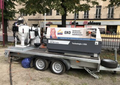 W naszej firmie pracujemy jedynie ze sprzętami doskonałej jakości, dlatego przy procesie piaskowania wykorzystujemy model piaskarki najwyższej klasy – SodaBlaster SB-500 Trailer™. Jej podstawowe zalety to m.in. niewielkie wymiary, cichsza praca w porównaniu do innych urządzeń z tej kategorii, a także zużycie paliwa niższe aż o 30%. Piaskarka pracuje zarówno w trybie na sucho, jak i w przypadku prac bezpyłowych – w otoczce wody lub w mixie wodnym.